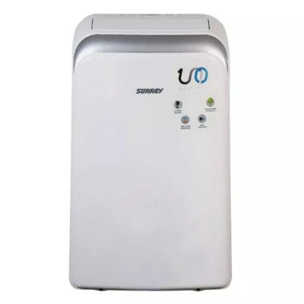 Nuevo Equipo Portátil Surrey. Refrigerante ecológico (R410A). Unidad frio calor por bomba: 60% de ahorro en consumo eléctrico en modo calor. Panel de control electrónico en la unidad con display LCD. Control remoto completo para todas las funciones del equipo. Reducidas dimensiones y estilo minimalista. Fácil traslado. Accesorios de instalación para ventana y pared. Filtros lavables removibles. Funciones Timer, Sleep, Autoswing y Autorestart. Un año de garantía.